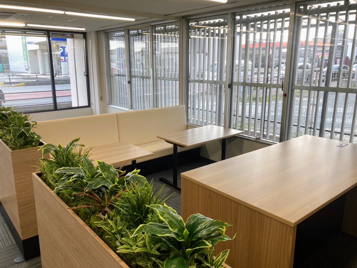 グリーンボックスやパーテーションの活用で、目線や動線にもしっかりと配慮しました。