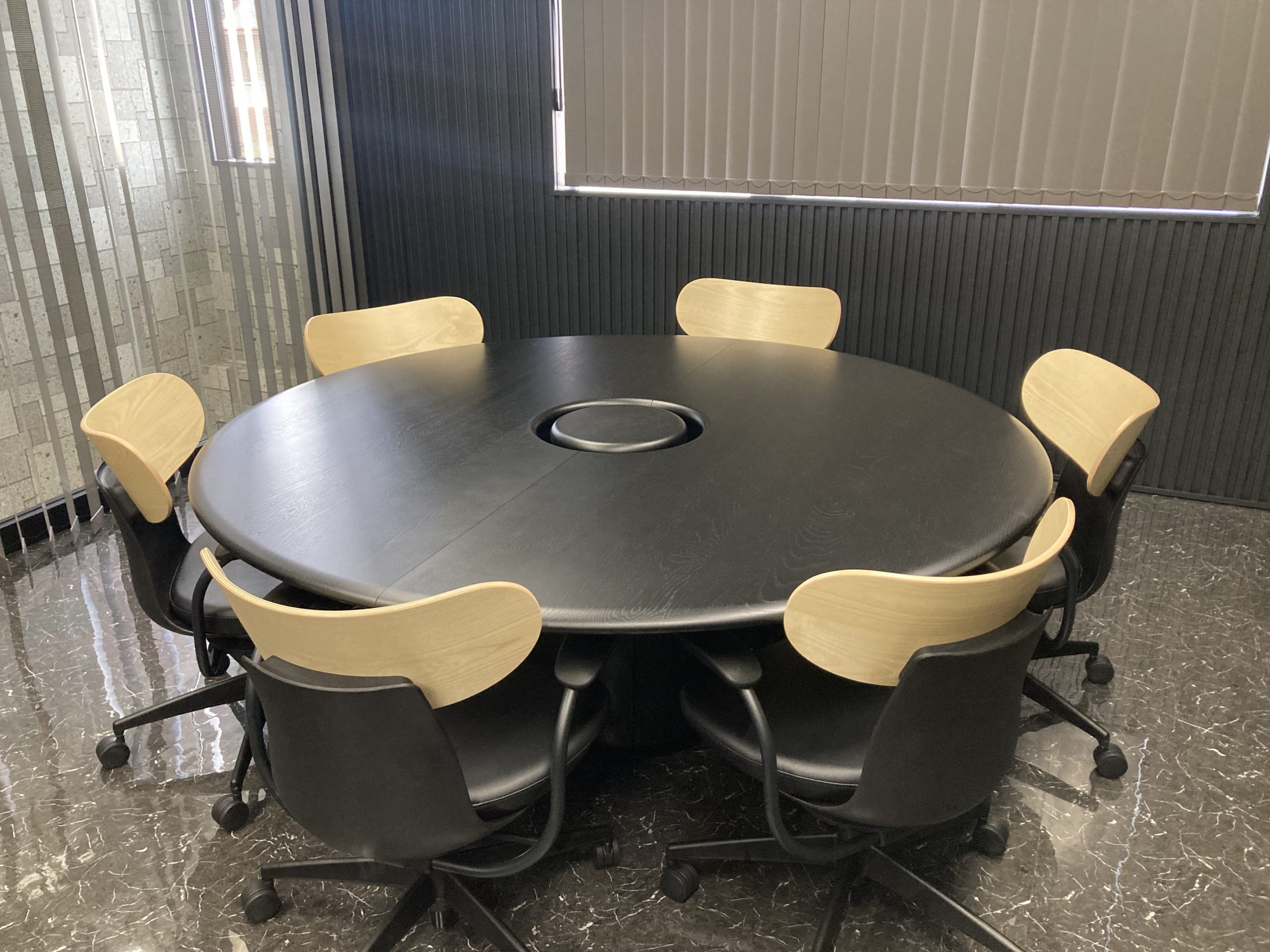 また別室の円形テーブルにも、同じシリーズの椅子を合わせています。