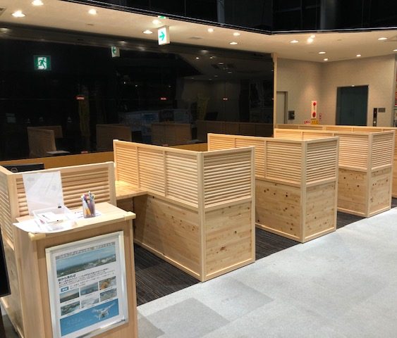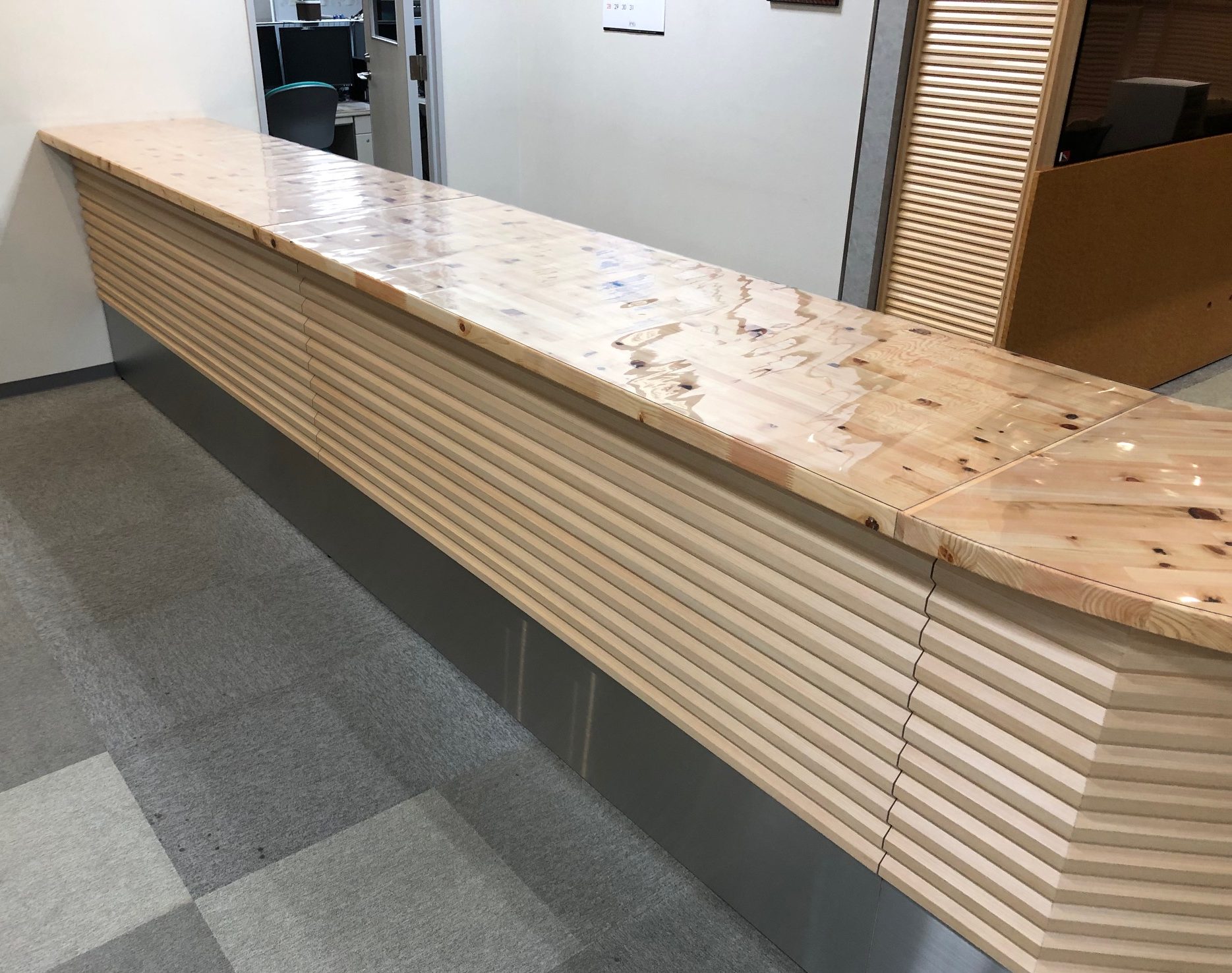 • 受付カウンターや壁面に桧を使用することで木の温かみを感じることができ、ご来場者様と従業員様が落ち着いて話ができる空間となりました。